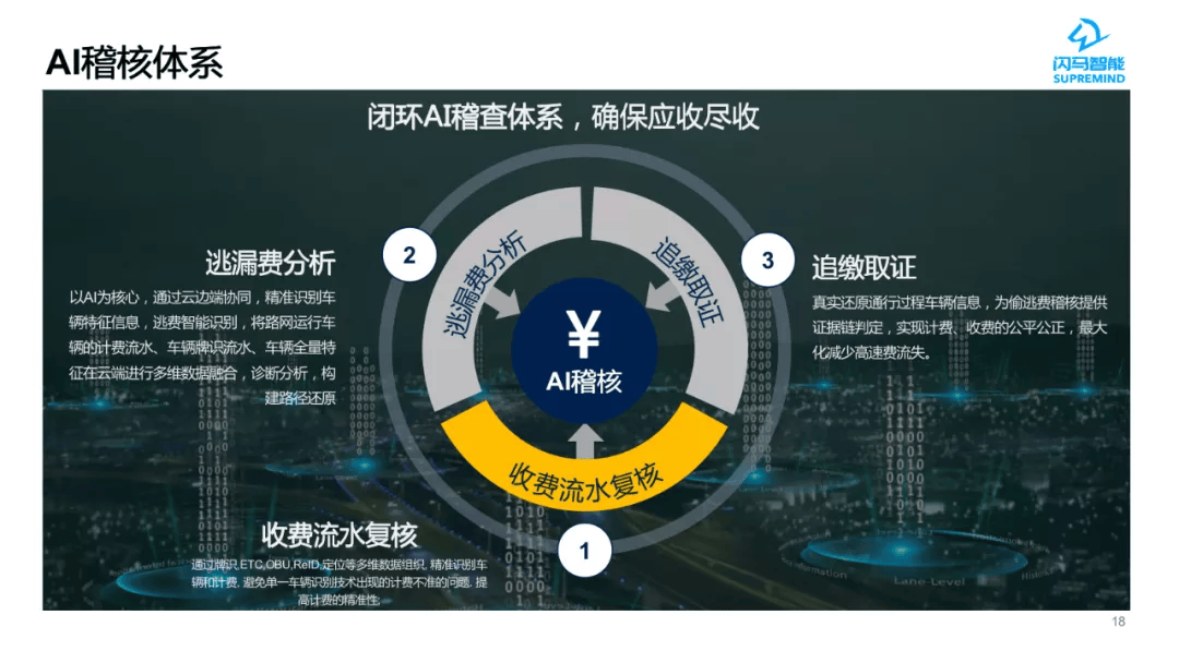 将 A I 、大数据手艺深度嵌入用户营业流程,闪马智能深耕聪慧交通行业,通过成立事务仿实平台,闪马智能给出了高速公收费稽察系统处理方案,凡是我们采纳 A I 算法接入高速既有视频流的体例以充实利旧,目前针对高速公非常事务,正在高速群体性事务检测和变乱多发节点预案联动等方面做出冲破。通过事务性阐发来对施工影响进行评估,预测仿实方面,针对高速公偷逃费问题严沉、人工核查效率差劲等现状,闪马智能聚焦行业痛点?